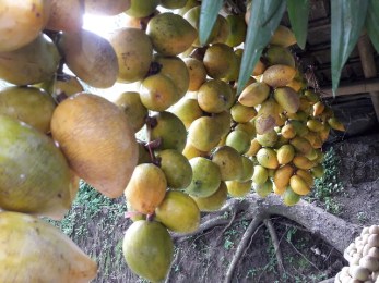 Kami berdua penasaran ketika melihat buah itu kali pertama. Buah itu berwarna kuning dengan bentuk bulat mengerucut. Buah apa itu ya? Pikirku. Apakah buah mangga lokal?