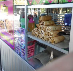 Di sisi luar taman ini ada banyak penjaja makanan, dari jajan yang mudah dijumpai seperti batagor dan siomay, juga ada berbagai jajanan yang lagi hits seperti Banana Roll Cake dengan berbagai topping seperti keju atau cokelat.