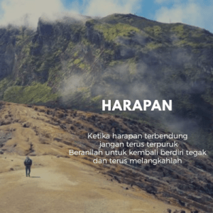 Jika Ibu dan pasangan berhenti menyemangatiku, mungkin aku akan terus terpuruk. Aku kembali melangkah. Kegagalan dulu menjadi cambuk bagiku untuk kembali berupaya dan berhati-hati agar tak jatuh di lubang yang sama. Semangat dan kerja kerasku perlahan-lahan kembali mendatangkan hasil. Aku kembali menatap masa depan dengan antusias.
