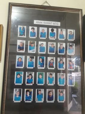 Di ruang tamu terdapat foto-foto para penghuni panti. Mereka memiliki keterbatasan lebih dari satu sehingga disebut Tuna Ganda.Ada yang tunanetra dan mengalami keterbelakangan mental. Ada juga yang sekaligus tidak mampu mendengar dan memiliki fisik yang lemah.