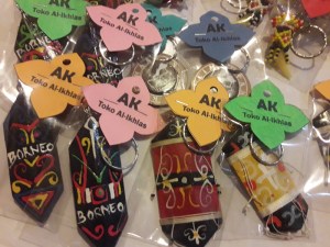 Aku lalu menuju bagian gantungan kunci. Benda oleh-oleh yang tak mahal dan biasanya khas. Ada yang bentuknya seperti perisai, manik-manik, dan masih banyak lagi.