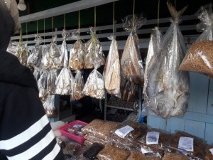 Ya, Kalimantan kaya ikan. Demikian juga dengan Bontang. Di Bontang Koala juga terdapat lapak-lapak penjual ikan asin. Tinggal pilih jenis yang disukai. Apabila Kalian beli ikan asin mending ditaruh di bagasi ya karena kadang-kadang dilarang masuk ke kabin pesawat.