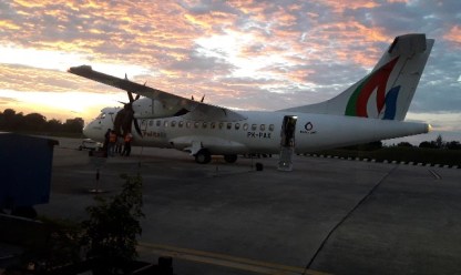 Aku termasuk beruntung mendapat kesempatan menumpangi pesawat ini menuju Balikpapan. Kami berangkat sejak pukul 05.30 WITA ke bandara udara yang tak terlalu besar ini.
