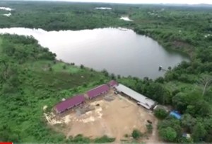 Dari atas nampak pegunungan yang gundul, hutan yang bolong-bolong dan danau dadakan yang berasal dari penggalian yang tak diurug kembali. Di perairan terdapat kapal-kapal tongkang pengangkut batubara.