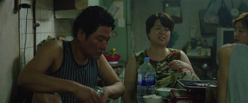 Pengambilan gambar yang paling kusukai ketika ketiga orang Kim berlari dari rumah keluarga Park kembali ke rumahnya. Di sana kamera menyorot pergerakan ketiganya, ketika ketiganya berlari menuju MRT dalam kondisi hujan yang begitu deras. Kemudian mereka harus berhujan-hujan menuruni tangga demi tangga seperti tiada habisnya menuju kediaman mereka, yang ternyata kemudian kebanjiran.