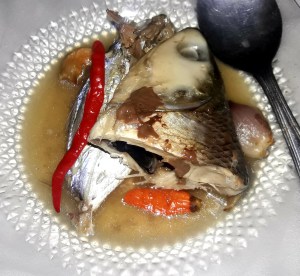 Harum ikan sudah menguar ke ruangan. Potongan dagingnya yang lembut nampak berwarna putih. Di sekelilingnya adalah air kaldu ikan tersebut yang telah bercampur bumbu dari kedua jenis bawang dan cabai. Kuhirup kaldu tersebut. Segar…