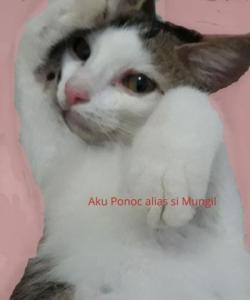 Kucingku bernama Ponoc alias si Mungil sejak Minggu pagi belum kelihatan. Aku mencarinya di halaman, di samping, dan kemudian memanggil-manggil namanya. Kucing putih hitamku itu belum terlihat juga ekornya. Biasanya ia suka menghambur setiap pagi bersama si Kidut. Tapi hari kemarin dan hari ini baru terlihat trio, Nero, Kidut, dan si Kecil. Aku jadi mencemaskannya. Ia kira-kira lahiran di mana?