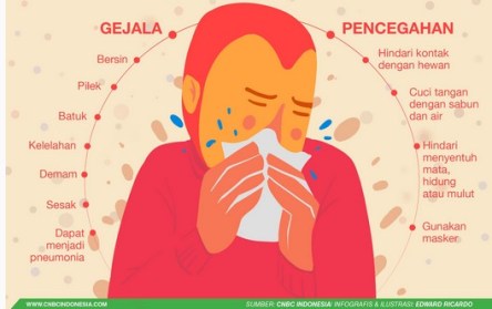 Gejala penyakit ini seperti flu batuk pada umumnya, ada radang, bersin, panas tinggi, hingga sesak nafas. Hanya sifatnya lebih ganas. Bahkan disebut-sebut lebih gawat daripada SARS dan MERS. Wah gawat juga. Korban pun juga terus bertumbangan, disebutkan sudah lebih dari 50 korban yang meninggal. Virus ini menyebar lewat batuk, bersin, liur, dan ada juga yang menginfokan bisa via makanan dan mata.