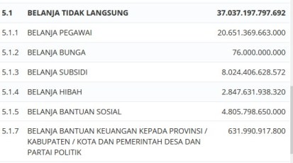 Di portal tersebut angka APBD-nya berbeda. Ia lebih besar, yaitu mencapai Rp 93 Triliun. Ada dua jenis anggaran, yaitu anggaran kegiatan dan nonkegiatan. Anggaran kegiatan dibagi berdasarkan satuan kerja perangkat daerah. Sedangkan anggaran nonkegiatan bisa berupa gaji, subsidi, hibah, dan sebagainya.