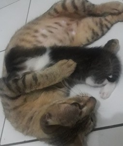 Bayi kucingnya kutitipkan ke si Mungil. Si Mungil yang melahirkan sehari sebelumnya adalah ibu kucing yang baik. Ia menjaga dan menyusui empat anaknya. Tambah satu kucing ia tak masalah. Jadilah si Mungil merawat lima bayi kucing.