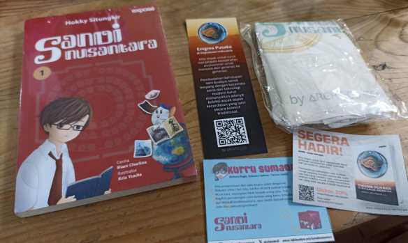 Oh iya ketika aku membeli buku ini di Tokopedia, selain buku aku juga mendapatkan kantung kain, pembatas buku, dan voucher diskon membeli buku Enigma Pusaka di Kepulauan Indonesia yang juga karya Hokky Situngkir. Surprise dan suka dengan pernak-perniknya. Oh iya karena buku komik sains ini ringan maka tak sampai satu jam, aku sudah selesai melahapnya. Buku ini bisa kupinjamkan ke keponakan agar makin banyak yang mendapat ilmu dari komik budaya ini.