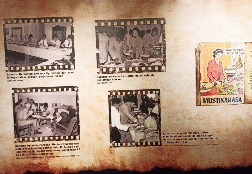 Di gedung Arsip Negara yang terletak di Jalan Gajah Mada, terdapat koleksi pameran tentang kepresidenan, terutama Bung Karno, yang ditayangkan begitu menarik. Ada pojok tersendiri yang membahas kecintaan Bung Karno akan kuliner. Ia kemudian menyusun buku kuliner berjudul Mustikarasa bersama istrinya, Hartini.