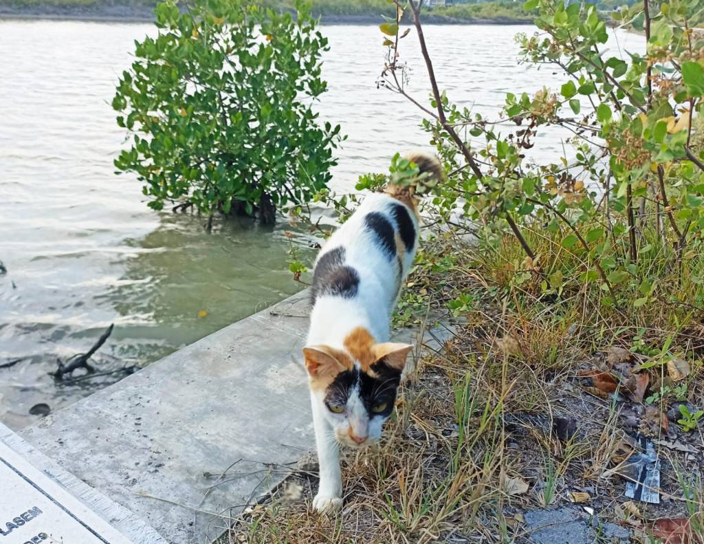 Seekor kucing di kawasan tambak