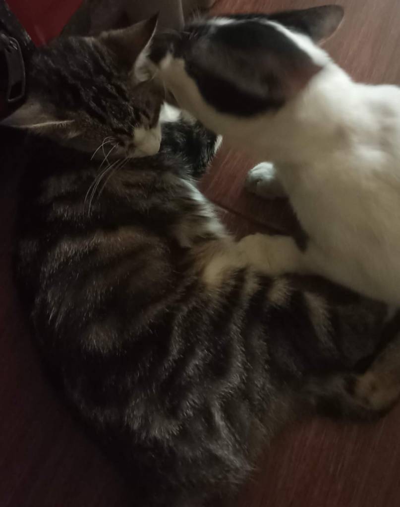 Ia kucing kecil yang cerewet. Aku suka sekali menimpali meongannya seperti mengajaknya bercakap-cakap.