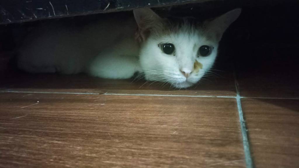Biasanya ia memisah dari kawanan kucing ia suka tiduran di kursi di bawah meja. Namun, entah kenapa belakangan ia suka bersembunyi di kamar atas.