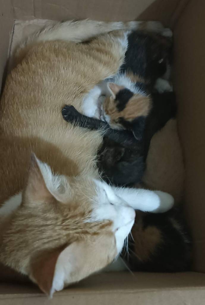 Tadi aku kasihan melihat keempatnya. Akhirnya kupindahkan ke kardus saja. Clara masih diam saja. Kusogok dengan makanan basah dari kaleng kecil favoritnya. Jangan dipindah-pindah dulu ya Clara.